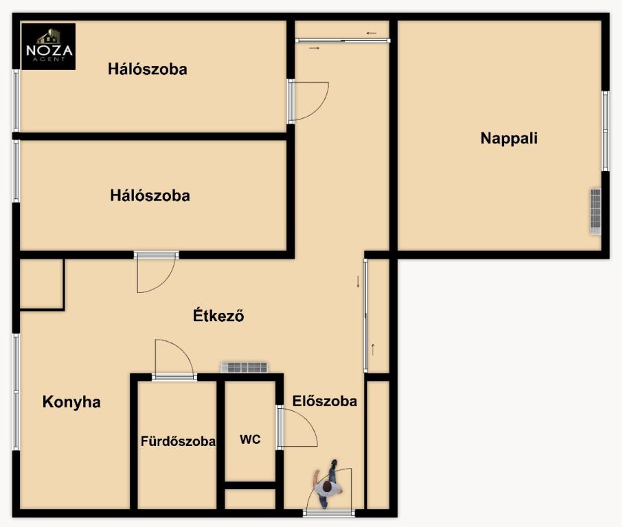 - nappali plusz 2 szobás